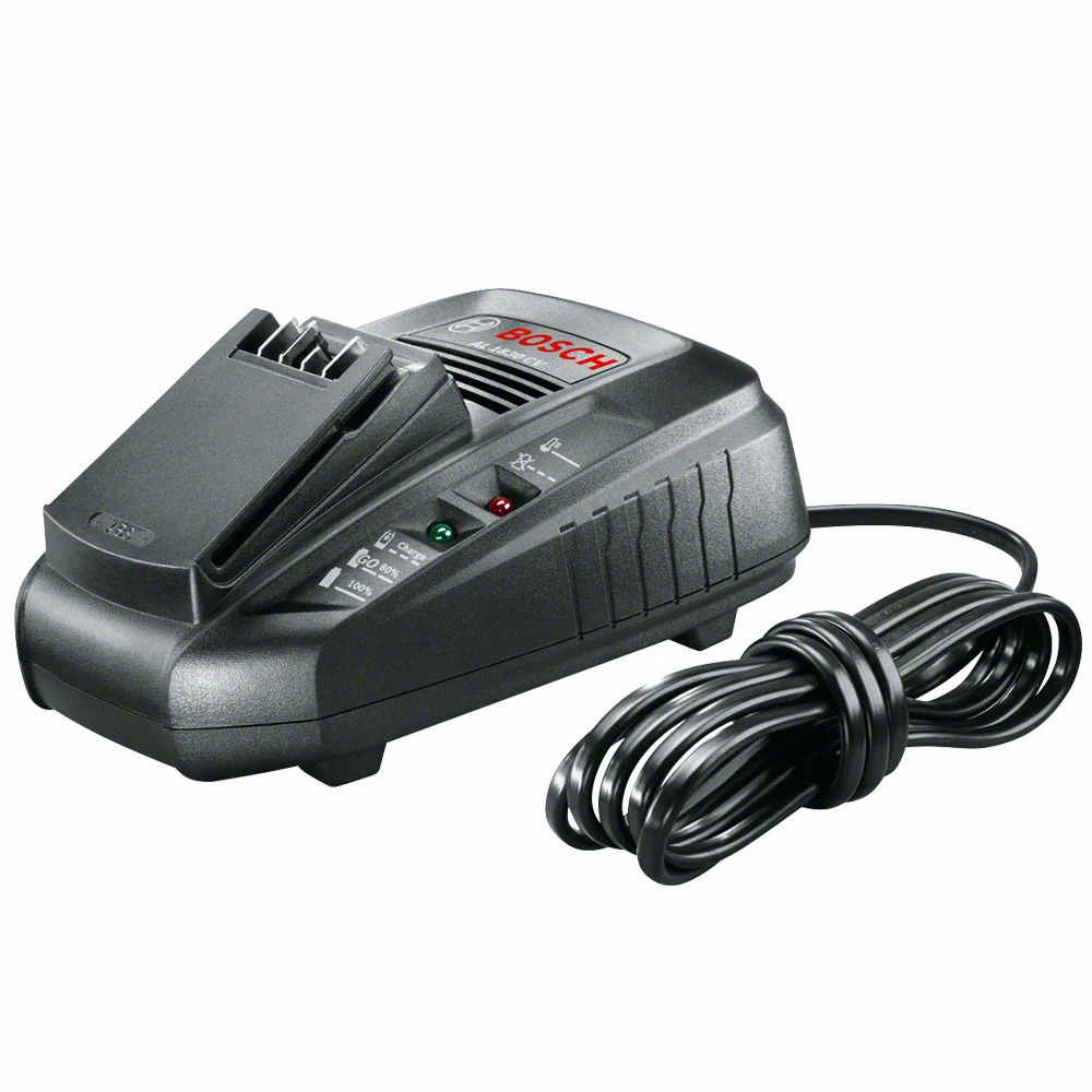 The AL 1830 cv quick charger from Bosch, Charges the batteries of all DIY and garden tools in the 18V power for all system and all 14.4 V batteries from Bosch. In only 40 minutes the battery is 80% charged and ready to use The green and red charge indicators informs you at all times of the current charging status or warn you if the battery needs charging.