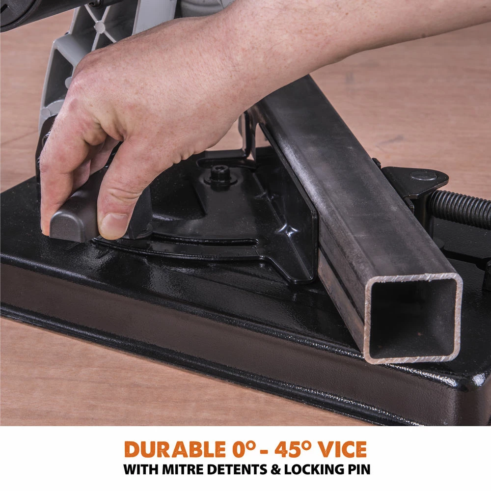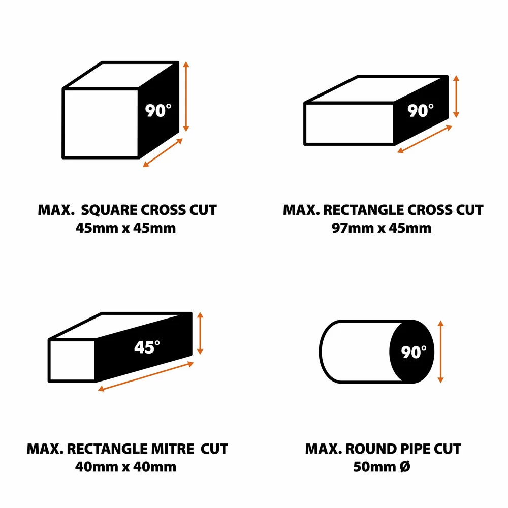 Compact, portable – quicker and easier to use than a hacksaw and far more portable than a full sized cut-off saw. Versatile too; the Rage 4 is equally at home cutting wood, steel, plastic or aluminim. And no need for either a ‘workmate’ or a vice – the Rage 4 has it’s own material vice too.