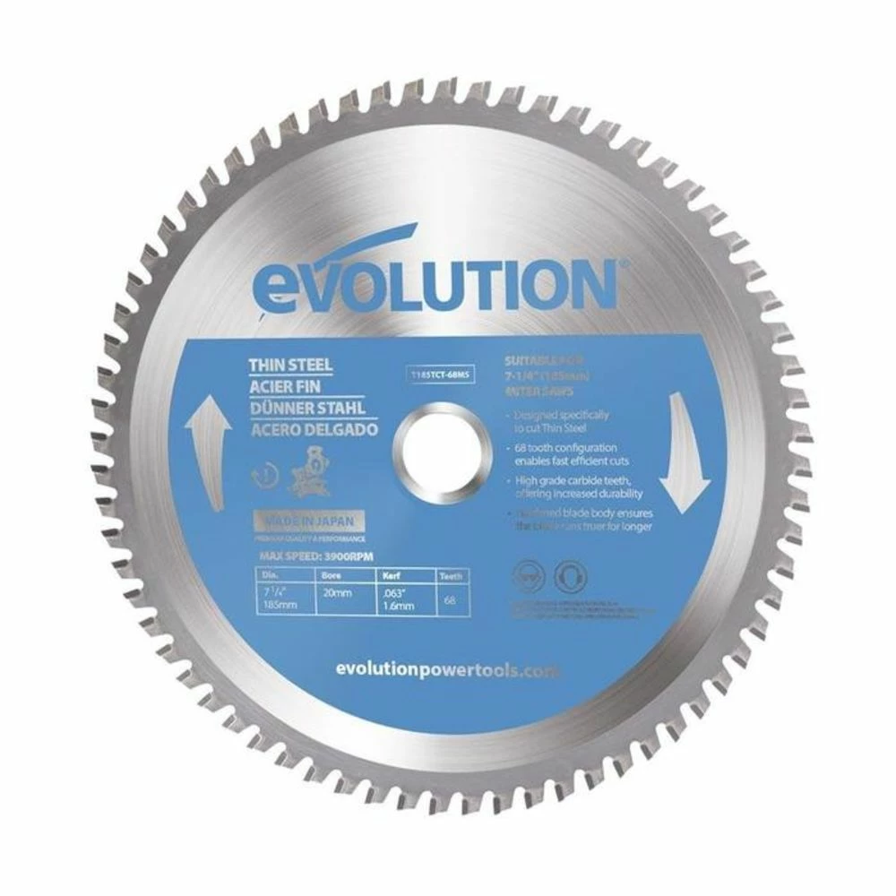 Evolution carbide-tipped metal cutting saw blade is ideal for cutting mild steel. Evolution metal cuttingblades use dry cut technology, cutting with minimal heat and burrs. Hardened blade body ensures theblade runs truer for longer.