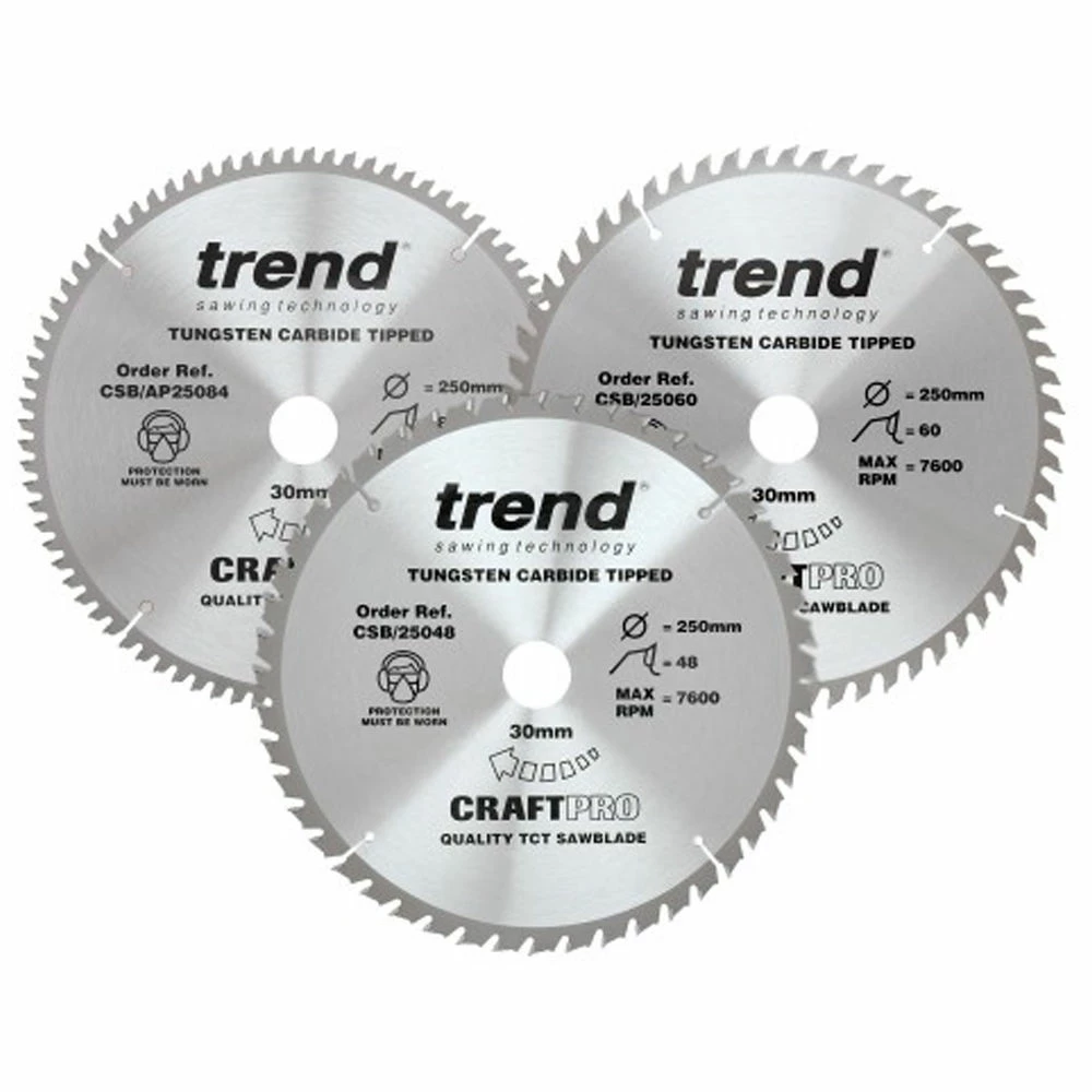 Multi-pack of same diameter Tungsten Tungsten Carbide Tipped Circular Sawblades designed for a professional finish in soft wood, hard wood, plywood, soft fibre, plasterboard stone, fibre board, cement bonded board and particle board.